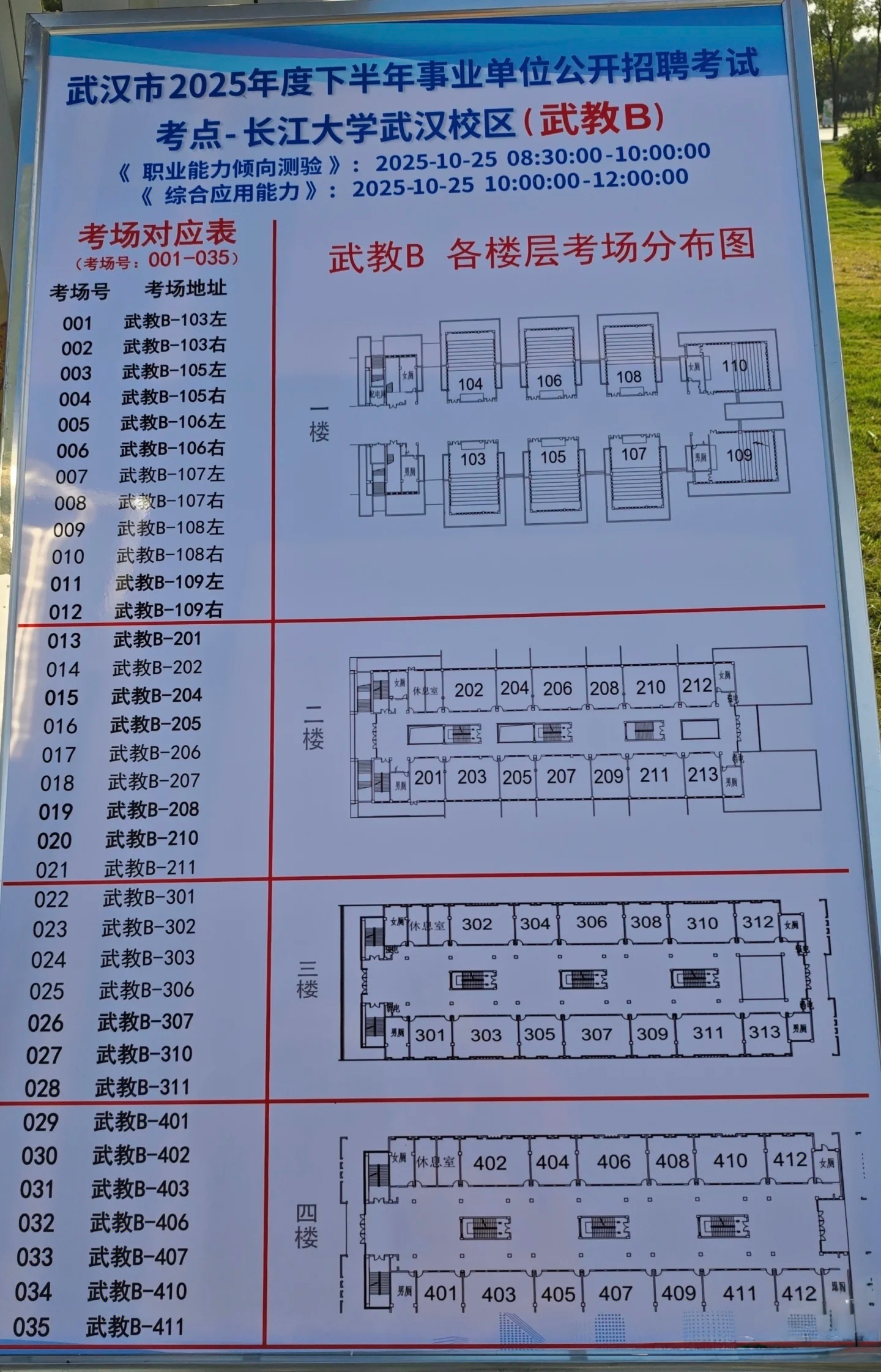 为帮助考生顺利参考,格木教育现将2025年武汉市下半年事业单位笔试长江大学武汉校区考点分布图整理如下: