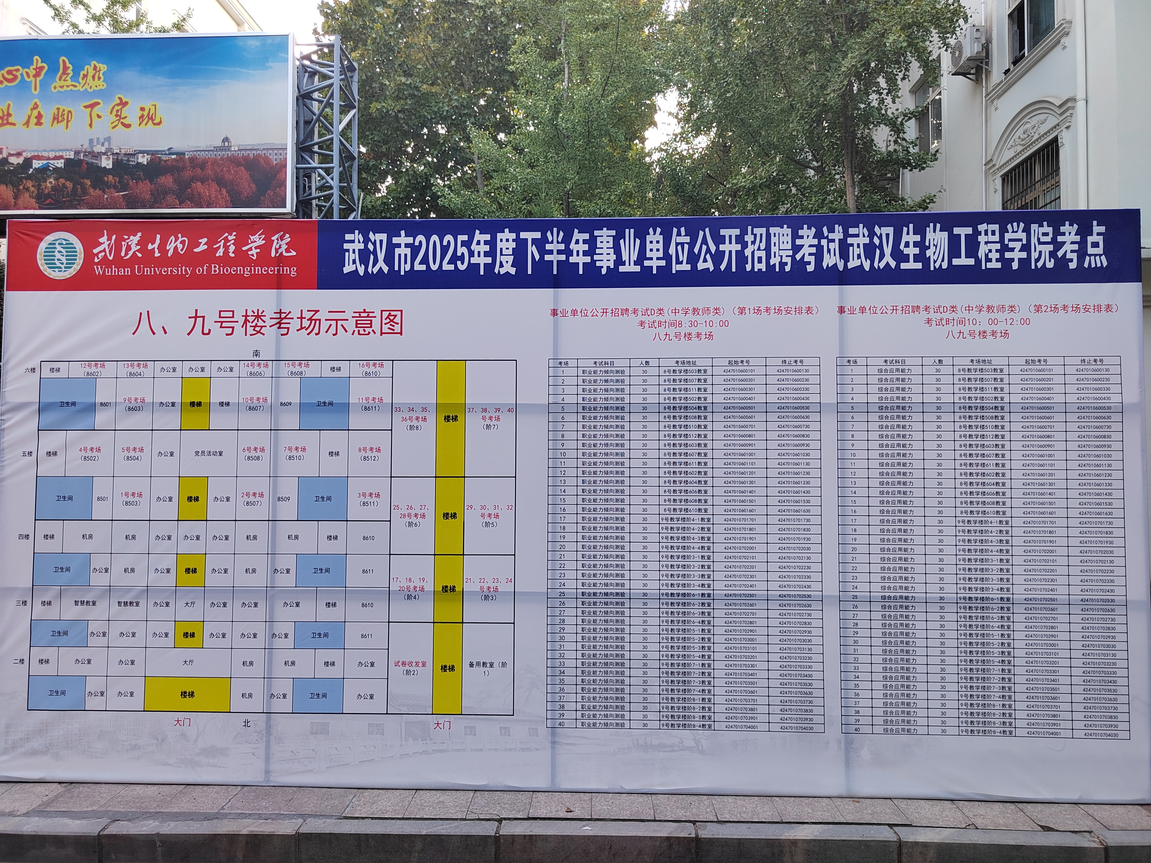 为帮助考生顺利参考,格木教育现将2025年武汉市下半年事业单位笔试武汉生物工程学院考点分布图整理如下: